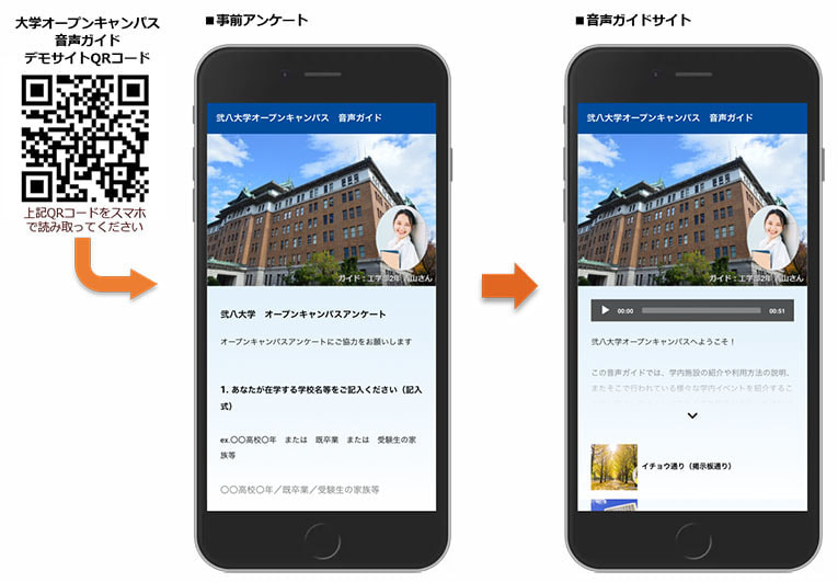 コロナ禍で心を掴むオープンキャンパスの実現には、スマホ音声ガイドが最適。
