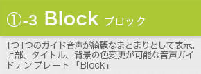 各音声ガイドページは、写真イメージ、タイトル、サブタイトル、ガイドテキストで構成されています。各音声ガイドのテキスト表示エリアは矢印ボタンでOpen⇔Closeが可能です